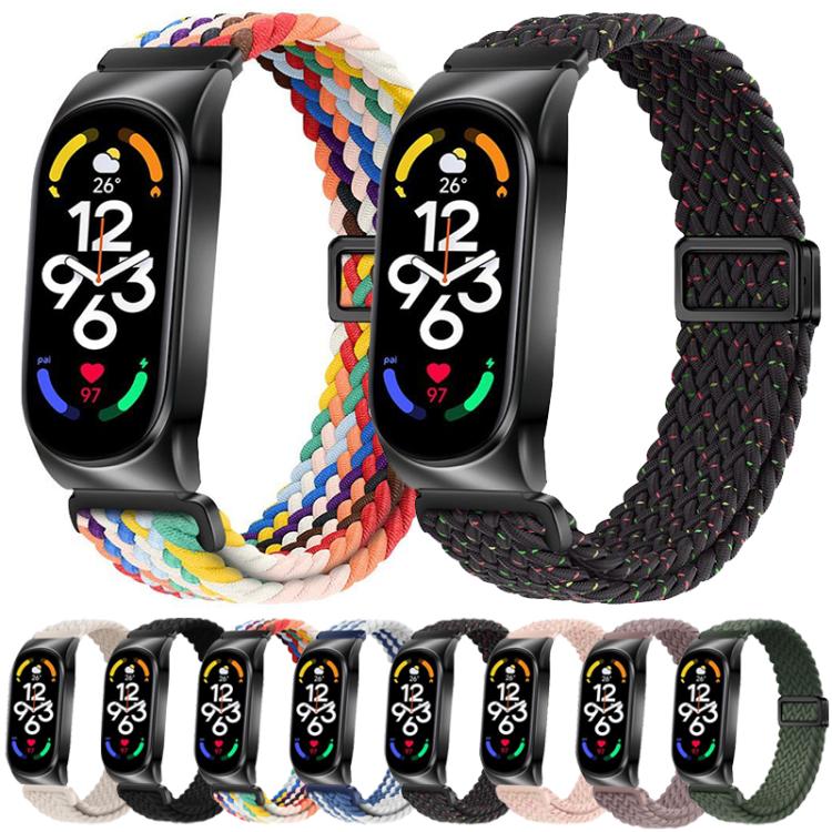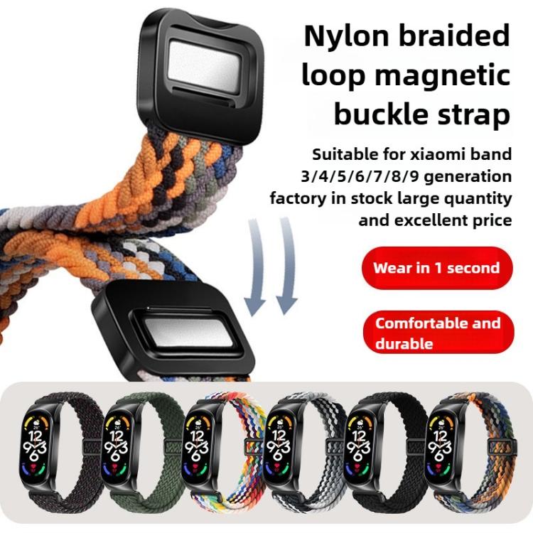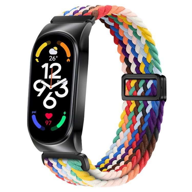 Correa de reloj elástica trenzada de nailon con hebilla magnética y marco de metal para Xiaomi Smart Band 9/8 (arcoíris)