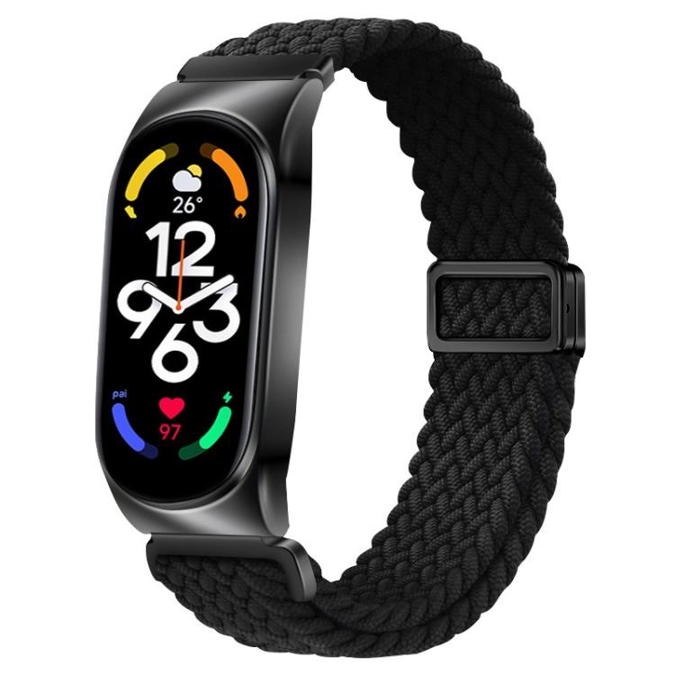 Correa de reloj elástica trenzada de nailon con hebilla magnética y marco de metal para Xiaomi Smart Band 9/8 (negro)