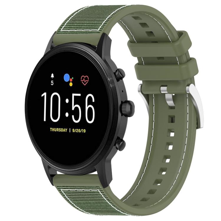 Correa de reloj híbrida de silicona y nailon trenzado de 22 mm para Fossil Gen 5 Carlyle/Julianna xDfind (verde)