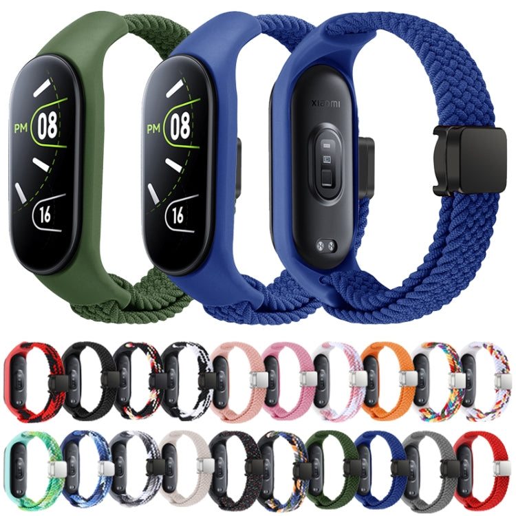 Correa de Reloj Integrada Xiaomi Mi Band 7/6/5/4/3 con Hebilla Magnética y Lazo Trenzado de Nailon (Rosa y Blanco)
