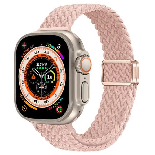 Correa de Reloj Trenzada de Nailon con Hebilla Magnética para Apple Watch Ultra 49mm (Crema, Rosa y Arena)
