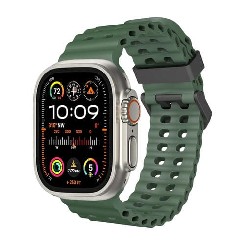 Correa de Silicona con Dos Agujeros para Apple Watch Ultra 2 de 49mm con Diseño Oceánico (Verde Bosque)
