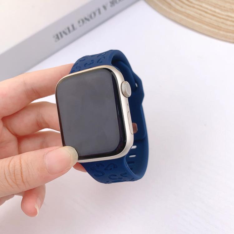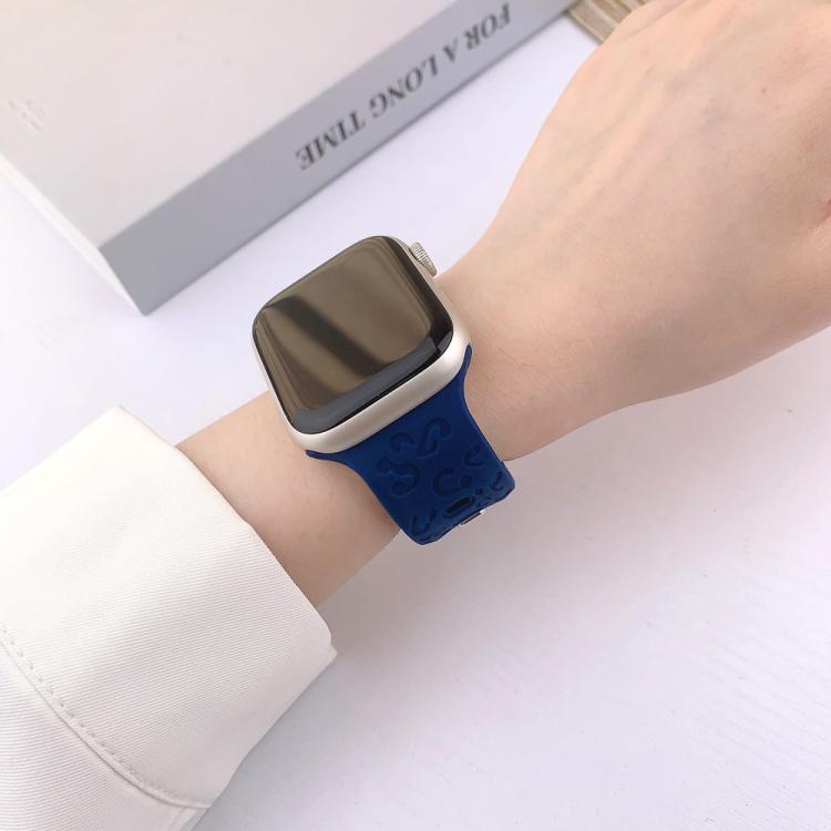 Correa de silicona con hebilla cóncava de leopardo para Apple Watch de 46 mm, 49 mm, 45 mm y 44 mm (azul medianoche)