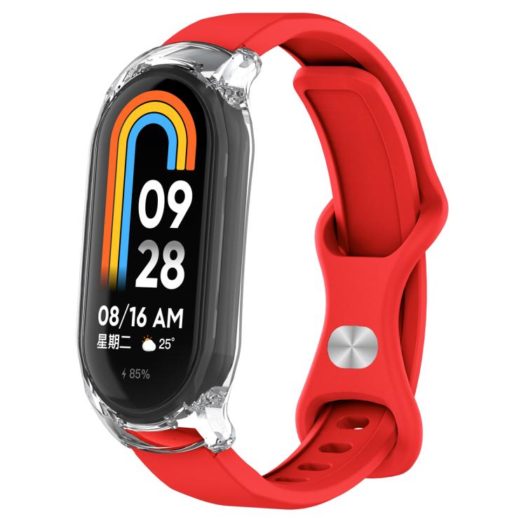 Correa de silicona con hebilla de mariposa y funda transparente para Xiaomi Smart Band 9/9 NFC (roja)