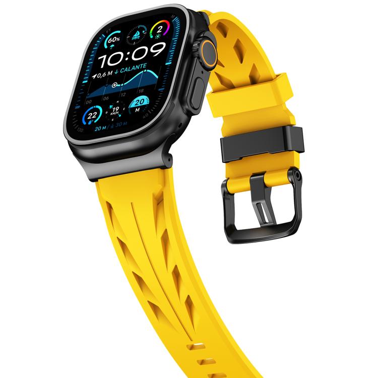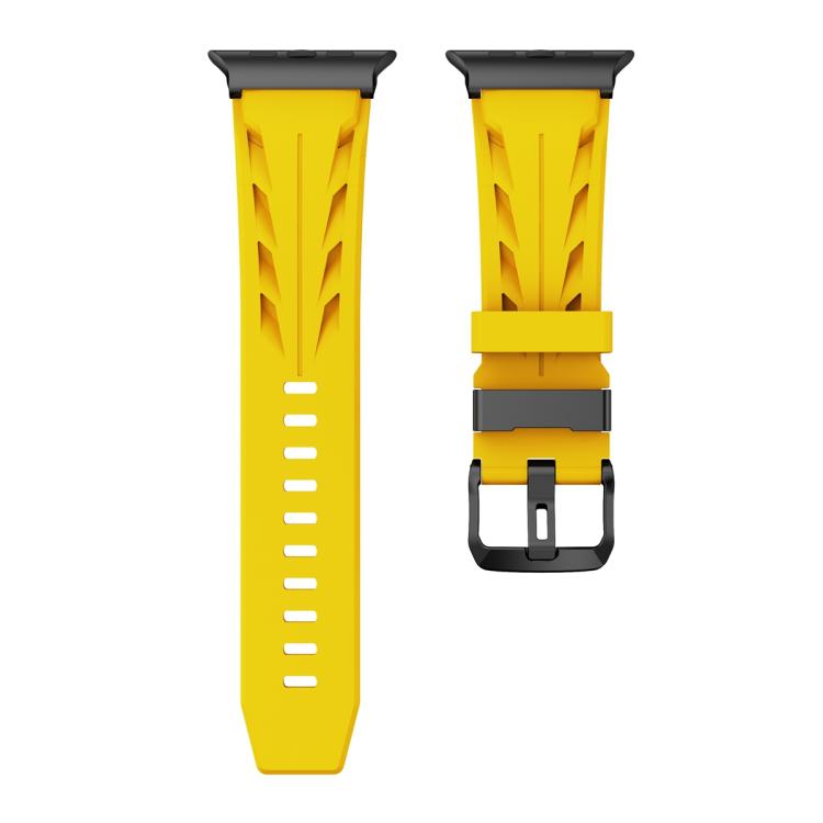 Correa de silicona con hebilla de pasador negra (amarilla) para Apple Watch de 42 mm / 41 mm / 40 mm / 38 mm