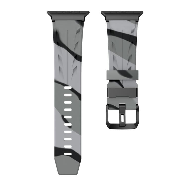 Correa de silicona con hebilla de pasador negra para Apple Watch de 42 mm / 41 mm / 40 mm / 38 mm (camuflaje negro y gris)