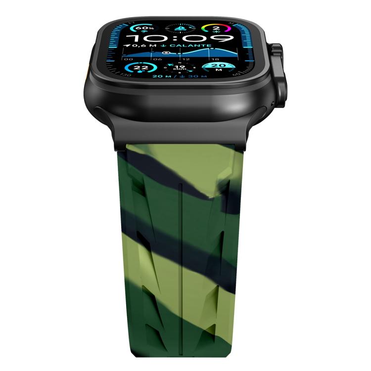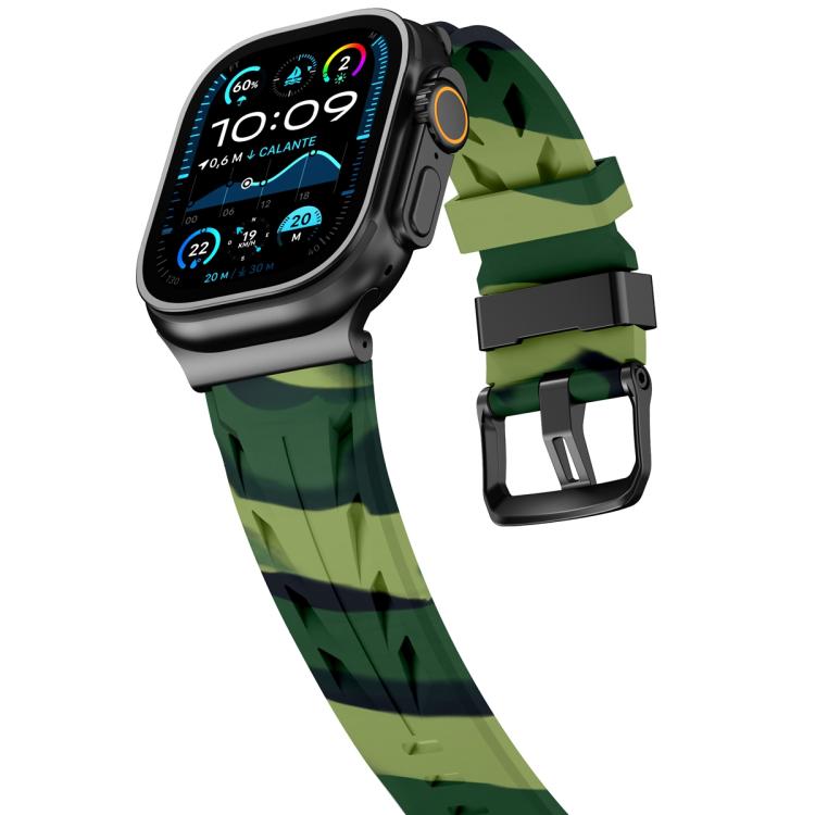 Correa de silicona con hebilla de pasador negra para Apple Watch de 42 mm / 41 mm / 40 mm / 38 mm (camuflaje verde militar)