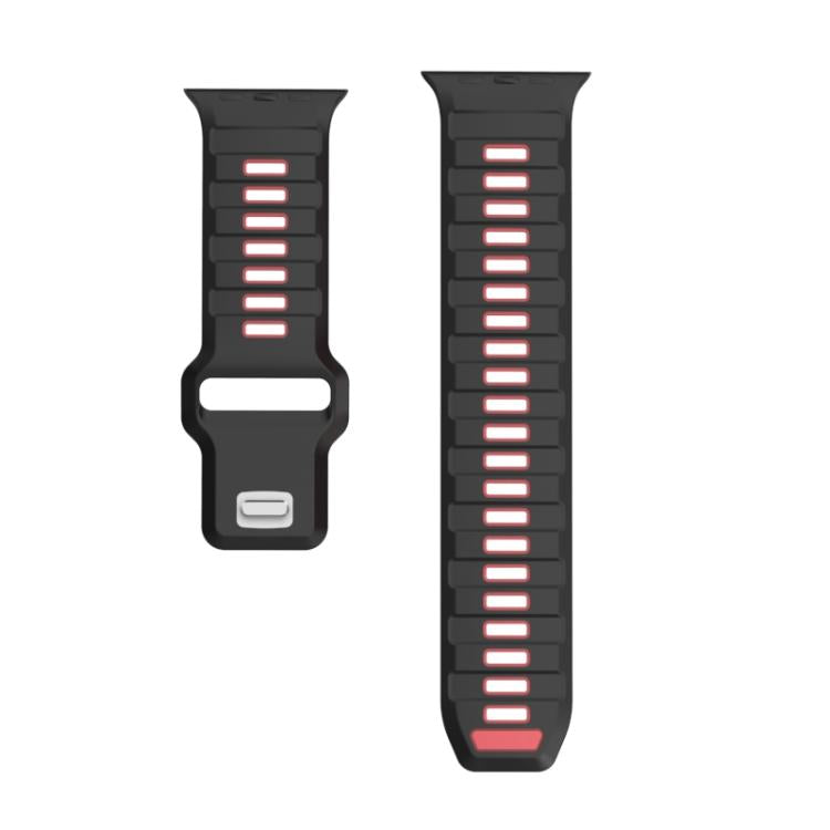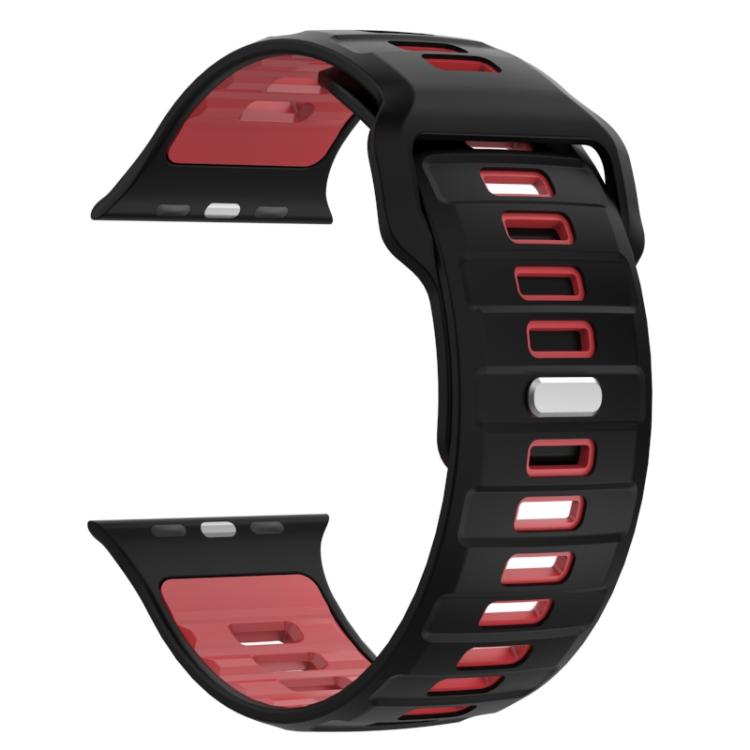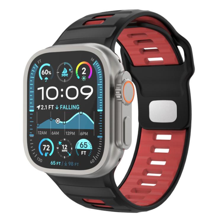 Correa de silicona con hebilla invertida a cuadros para Apple Watch de 46 mm, 49 mm, 45 mm y 44 mm (negro y rojo)