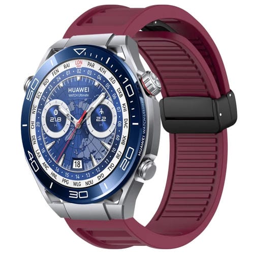 Correa de Silicona con Hebilla Magnética Plegable para Huawei Watch Ultimate de 22mm (Rojo Vino)