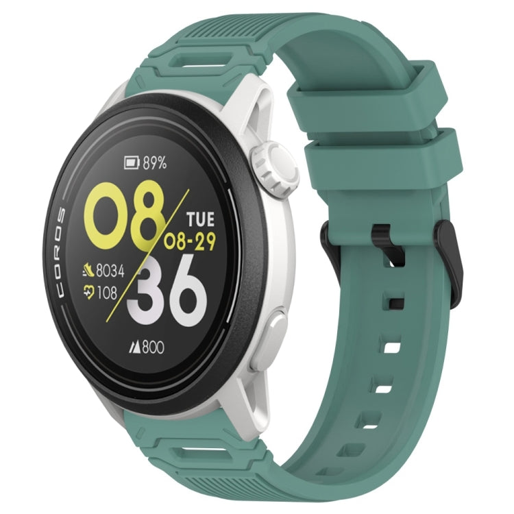 Correa de silicona con hebilla negra y patrón vertical para reloj COROS de 22 mm (verde oliva)