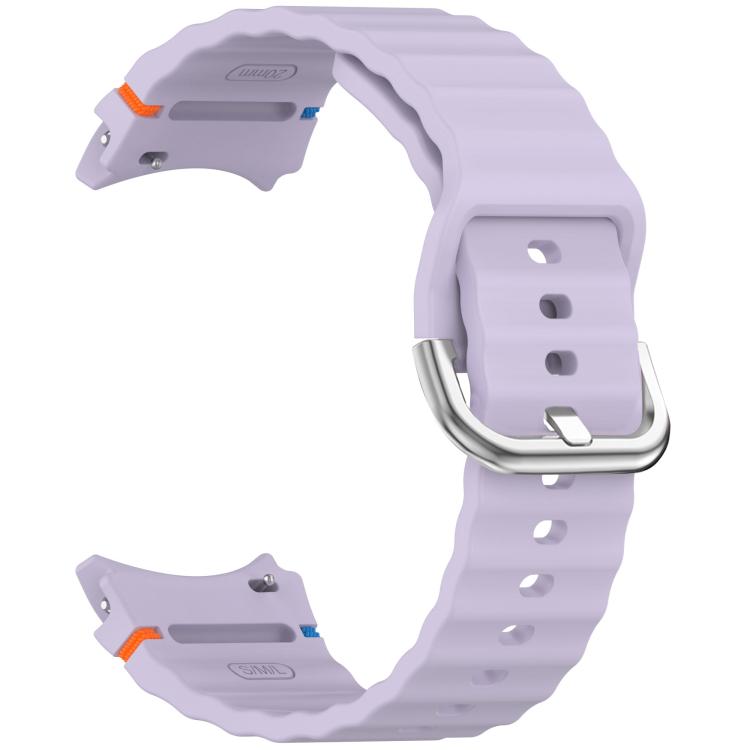 Correa de silicona con hebilla plateada y costuras onduladas para Samsung Galaxy Watch 7 de 40/44 mm (violeta)