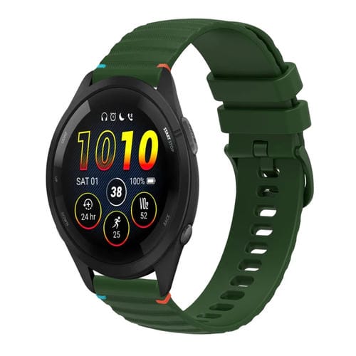 Correa de silicona 22mm Garmin Forerunner 265 con puntadas onduladas y puntos (Verde Militar)