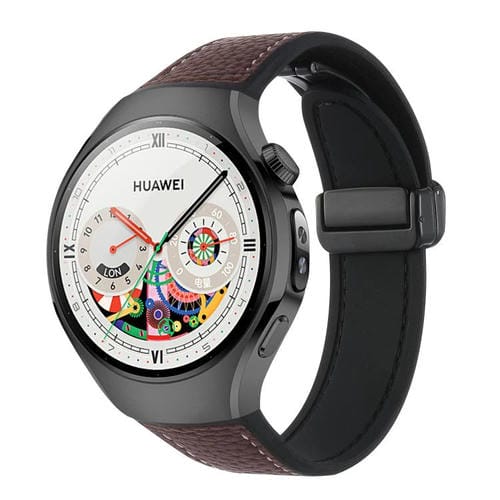 Correa de silicona híbrida con hebilla magnética para Huawei Watch 5 de 46 mm (piel granulada marrón oscuro y negra)
