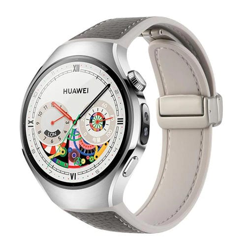 Correa de silicona híbrida de cuero con hebilla magnética para Huawei Watch 5 de 46 mm (gris lichi)