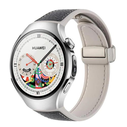 Correa de silicona híbrida de cuero con hebilla magnética para Huawei Watch 5 de 46 mm (negro lichi)