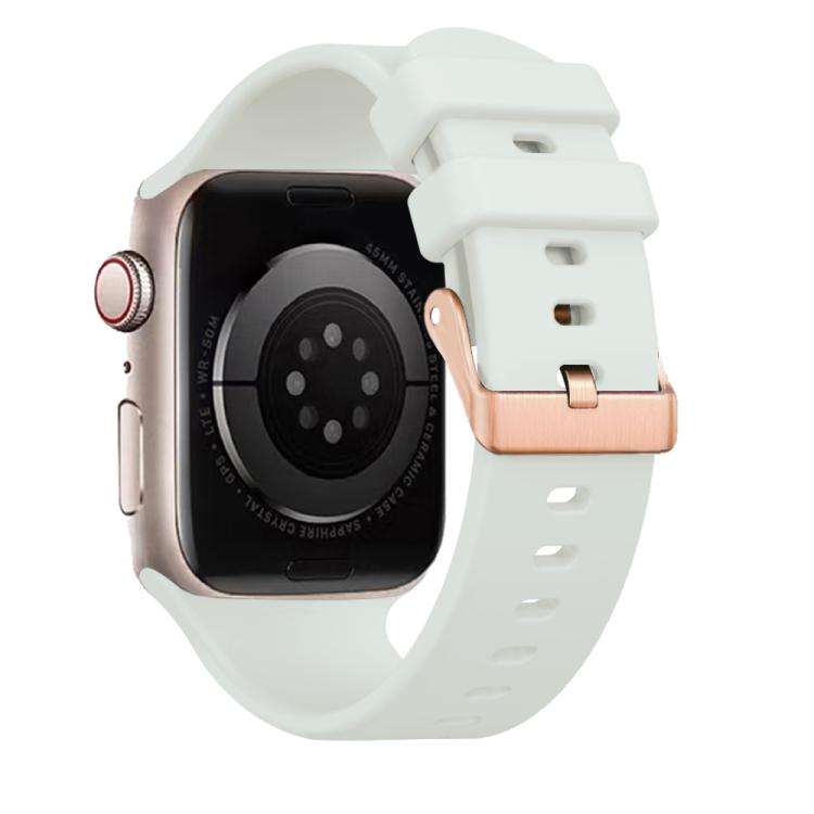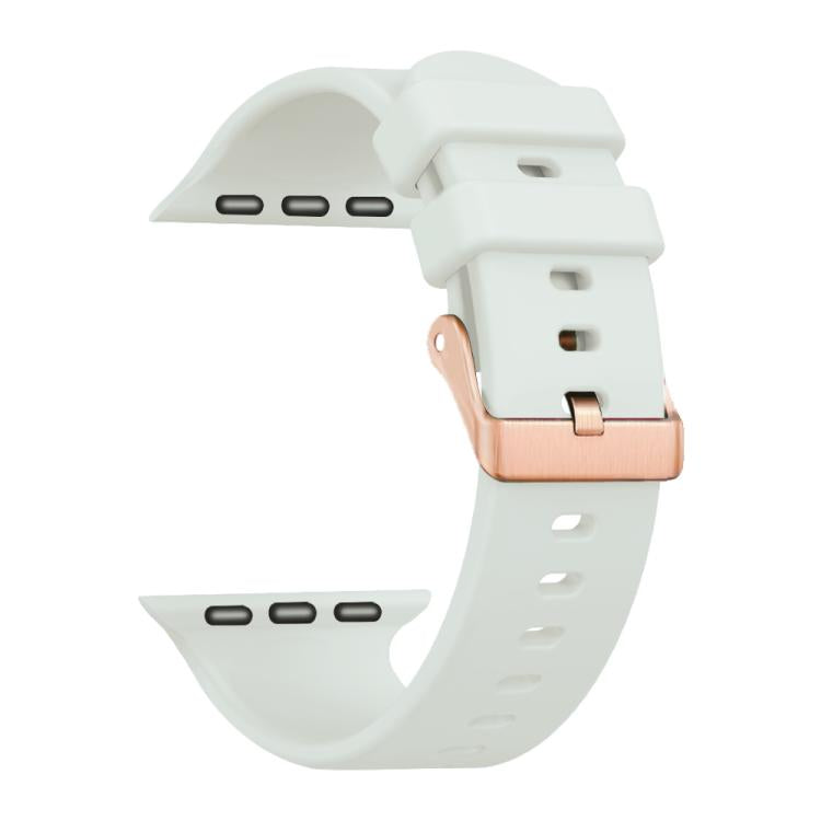 Correa de silicona lisa con hebilla de oro rosa para Apple Watch de 42 mm, 41 mm, 40 mm y 38 mm (gris niebla).