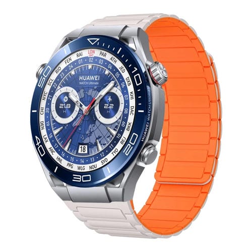 Correa de Silicona Magnética en Forma de I para Huawei Watch Ultimate 22mm (Luz de Estrellas y Naranja)