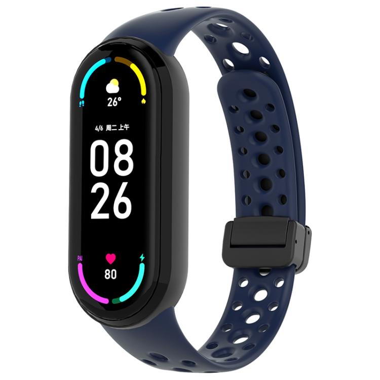 Correa de silicona magnética negra con hebilla para Xiaomi Smart Band de 10/9/8 agujeros (azul medianoche)