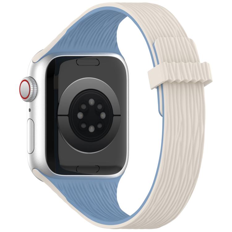 Correa de silicona magnética para Apple Watch de 46 mm, 49 mm, 45 mm y 44 mm con diseño de madera y vetas de agua (blanco antiguo, azul brumoso)