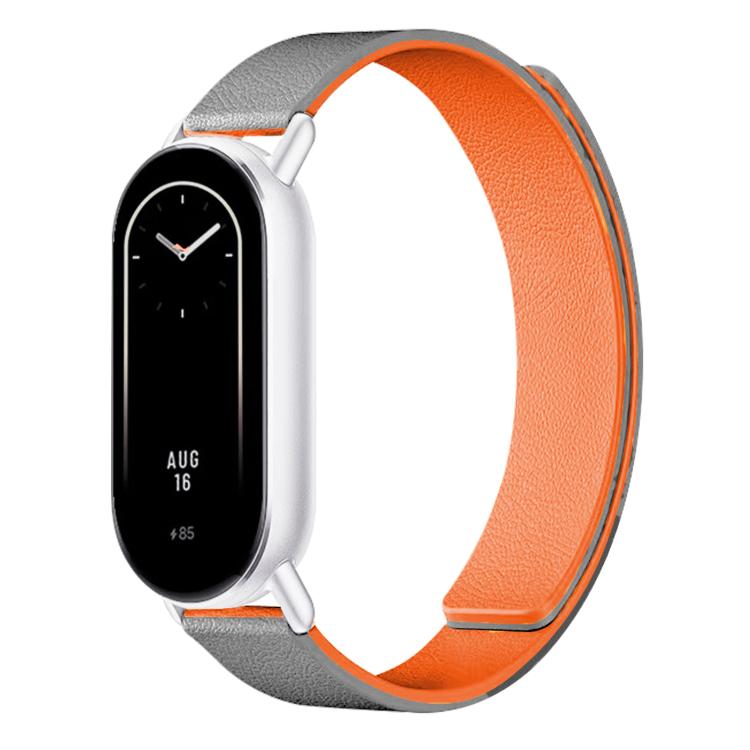 Correa de silicona magnética suave con textura de lichi para Xiaomi Smart Band 10/9/8 (gris y naranja)