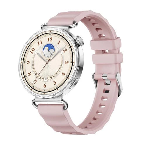 Correa de silicona para Huawei Watch GT 6 de 41 mm con hebilla plateada y barra de resorte de liberación rápida (rosa oficial)