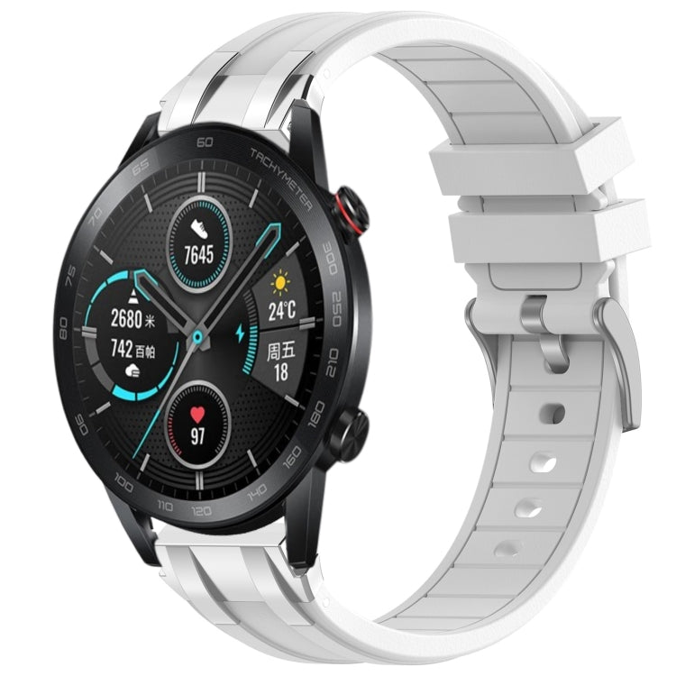 Honor Magic Watch 2 46mm 22mm Silicone Watch Band Strap with Quick Release Silver Buckle (White)