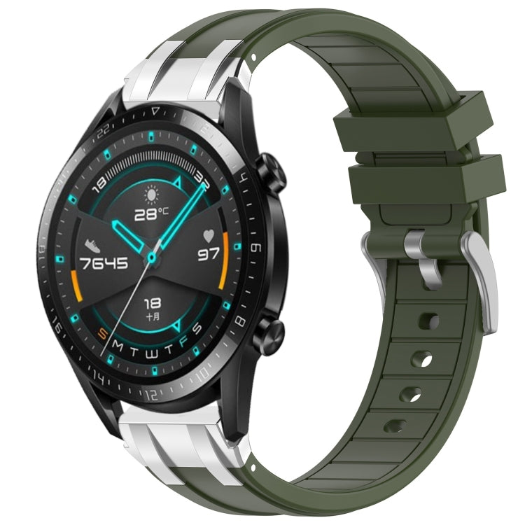 For Huawei Watch GT2 46mm 22mm Silicone Watch Band Strap with Quick Release Silver Buckle (Olive Green)