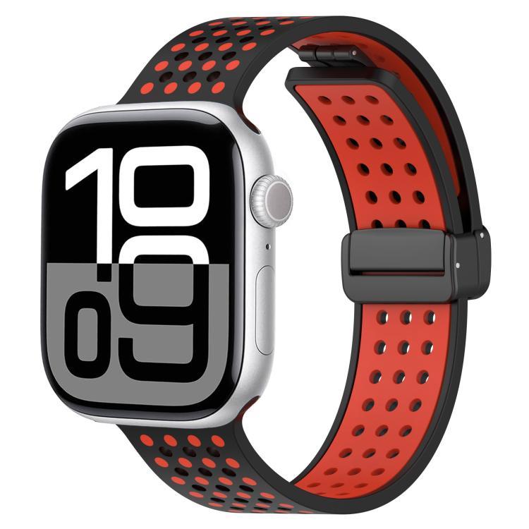 Correa de silicona transpirable con hebilla magnética para Apple Watch de 42 mm, 41 mm, 40 mm y 38 mm (negro y rojo)