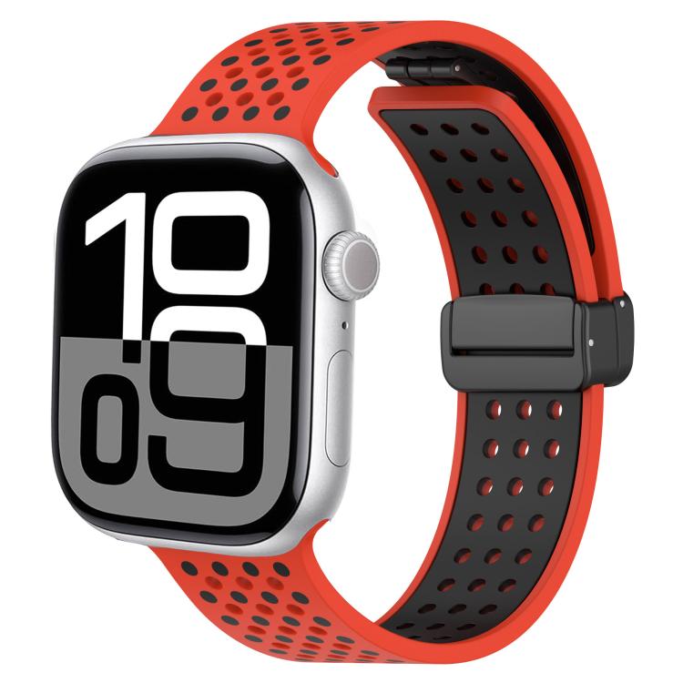 Correa de silicona transpirable con hebilla magnética para Apple Watch de 42 mm, 41 mm, 40 mm y 38 mm (rojo y negro)
