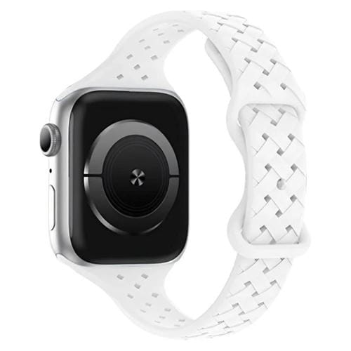 Correa de silicona trenzada con hebilla de mariposa para Apple Watch de 42, 44, 45, 46 y 49 mm (blanca)