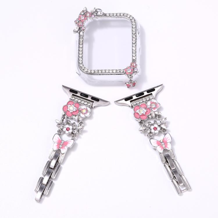 Correa hueca con un solo diamante y diseño de flor de borla para Apple Watch Series 9/8/7 de 41 mm (plateada)