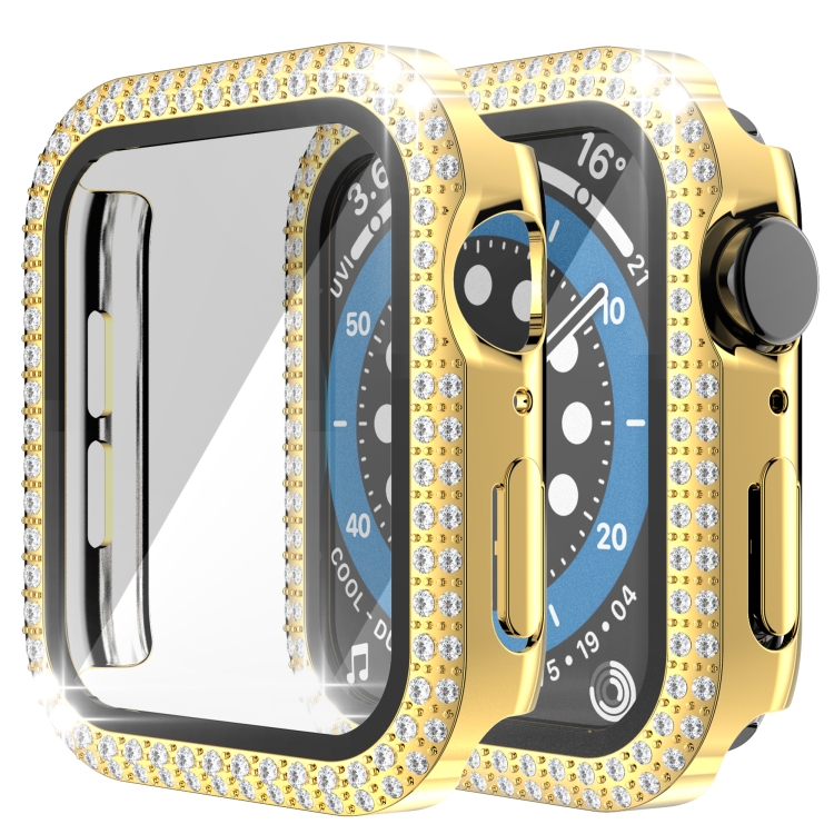 Funda Cristal Templado + PC Diamante para Apple Watch Series 6 SE 5 4 40mm (Gold)