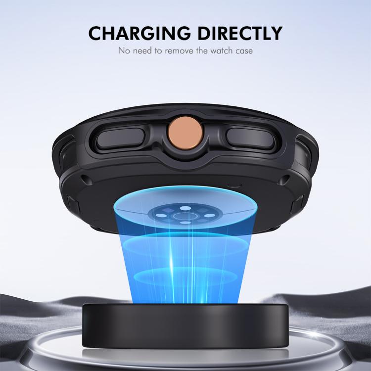ENKAY Hat-Prince - Funda de PC 2 en 1 para Samsung Galaxy Watch8 Classic de 46 mm, color sólido, con película suave de PMMA de cobertura total (gris metalizado)
