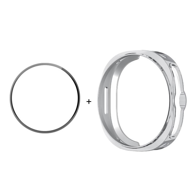 ENKAY Hat-Prince - Funda de TPU suave galvanizada 2 en 1 con película suave de PMMA de cobertura total para Samsung Galaxy Watch8 Classic de 46 mm (plateada)