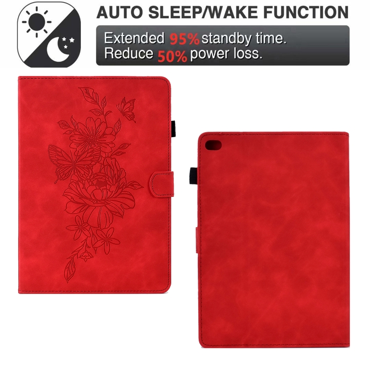 Estuche para Tableta iPad Mini 5/4/3/2/1 Cuero En Relieve Peony Butterfly (Rojo)