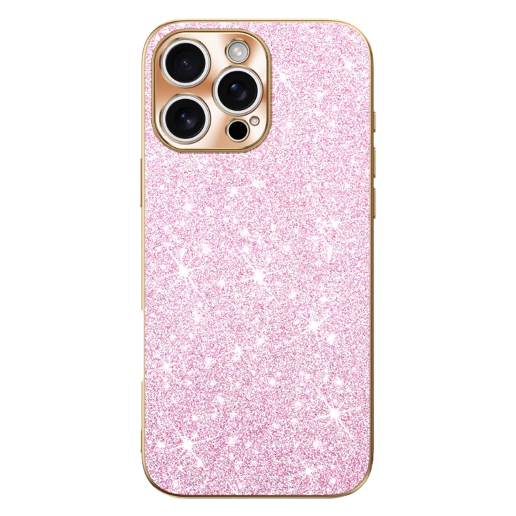 Estuche para Teléfono iPhone 16 Pro con Anillo de Lente Textura Cd y Diamante en Estrella (Rosa)