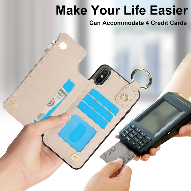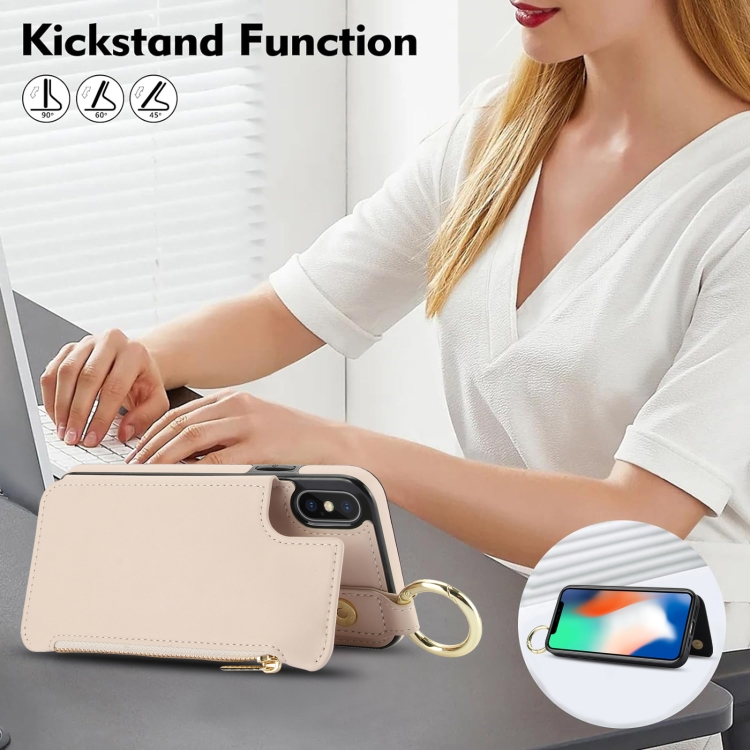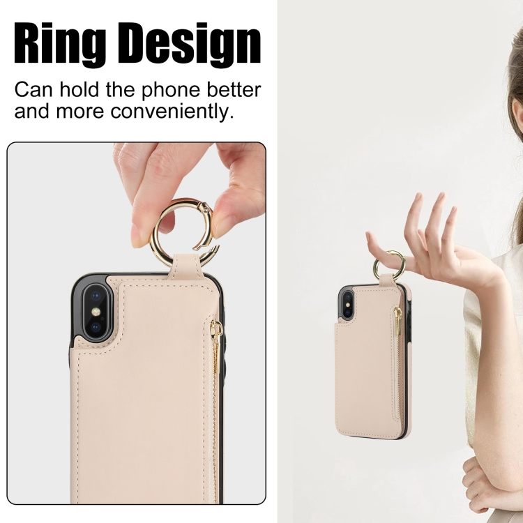Estuche para Teléfono Rfld iPhone Xs Max Cremallera y Anillo Doble Hebilla Antirrobo (Blanco)