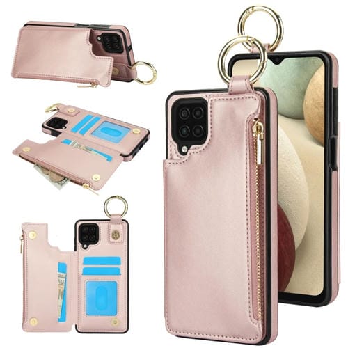 Estuche para Teléfono Samsung Galaxy A12 Rfld con Cremallera y Anillo de Doble Hebilla Antirrobo (Oro Rosa)