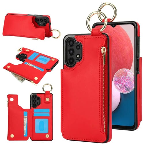 Estuche para Teléfono Samsung Galaxy A13 4G/5G Rfld con Cremallera y Anillo de Doble Hebilla Antirrobo (Rojo)