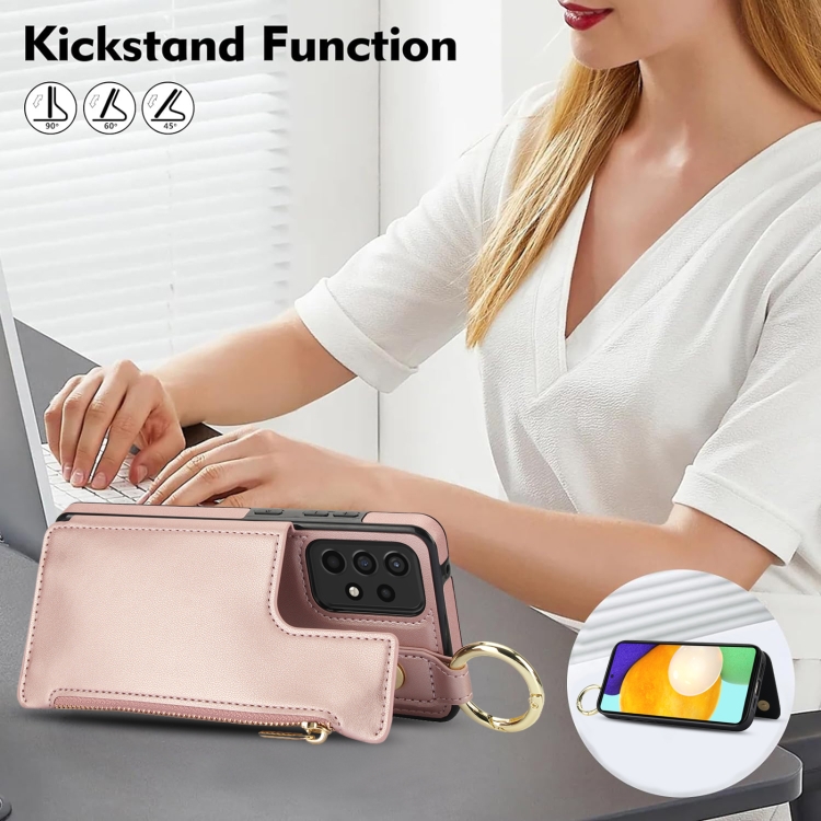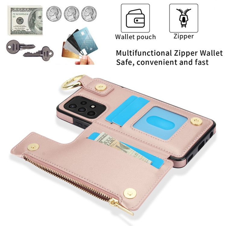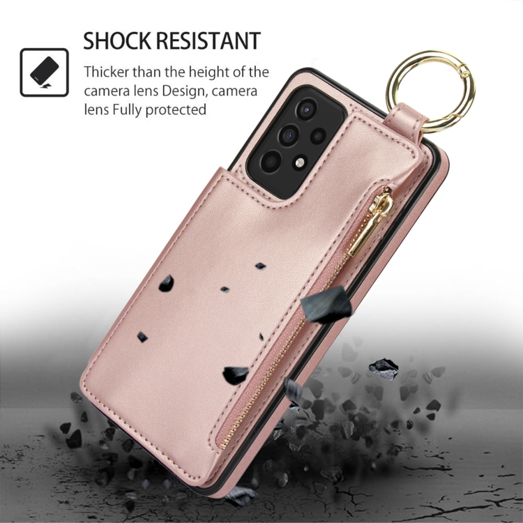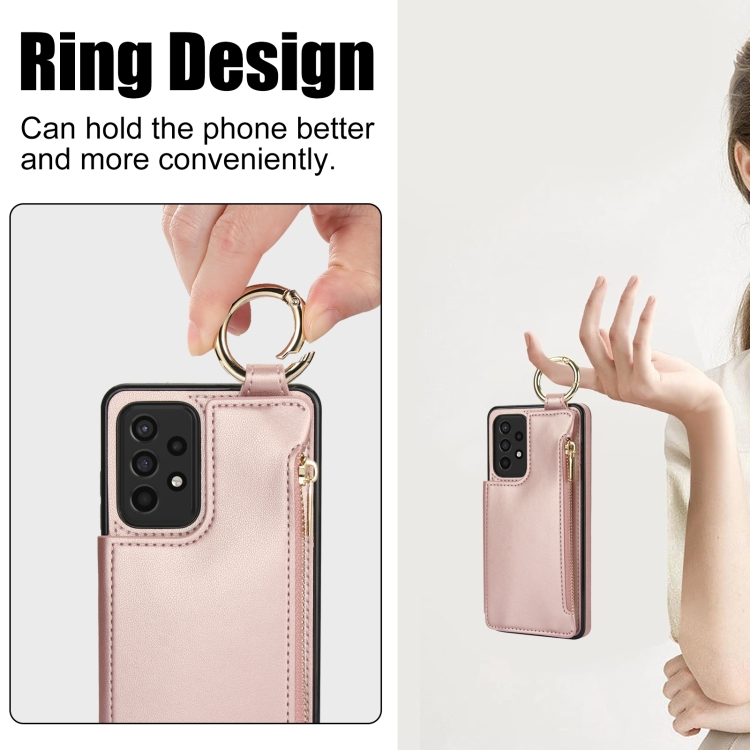 Estuche para Teléfono Samsung Galaxy A72 4G/5G Rfld con Cremallera y Anillo de Doble Hebilla Antirrobo (Oro Rosa)