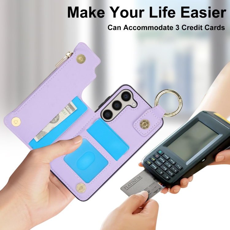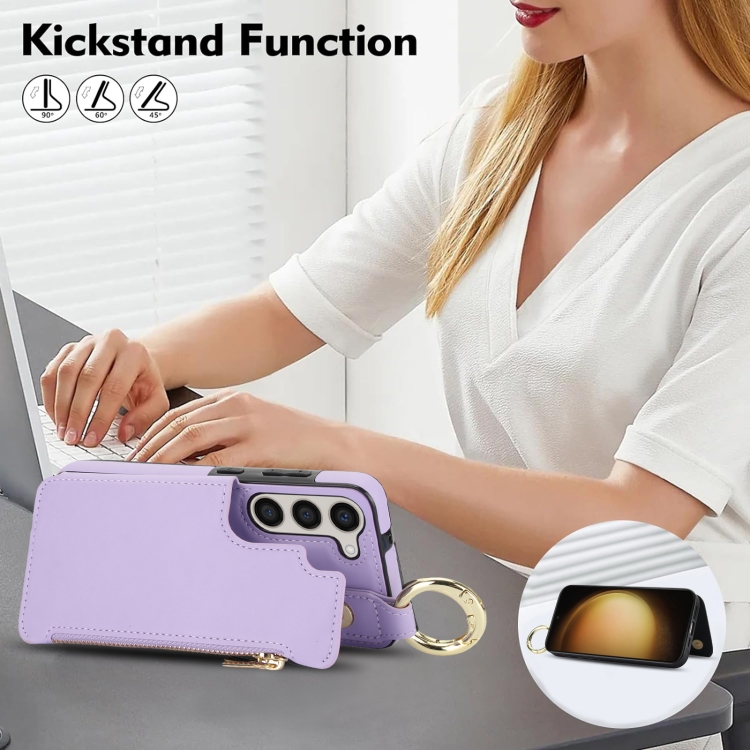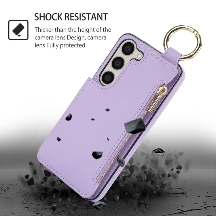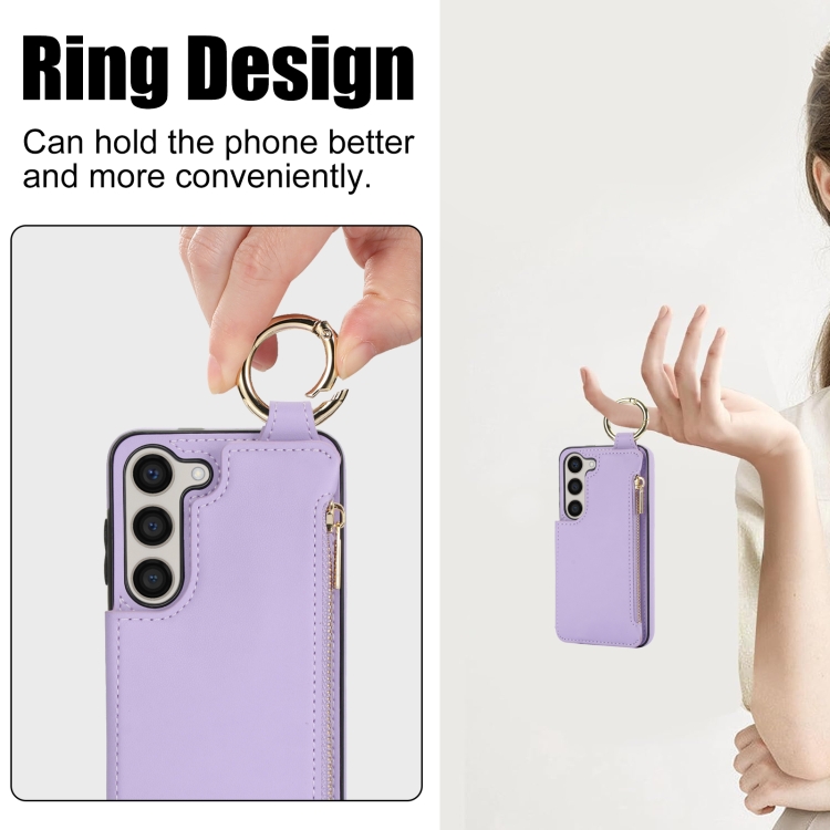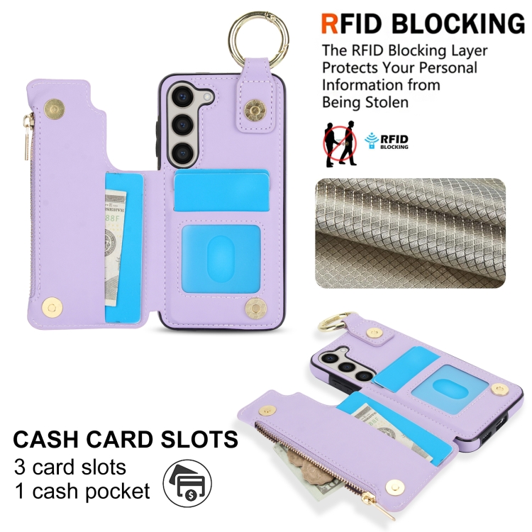 Estuche para Teléfono Samsung Galaxy S23 5G Rfld con Cremallera y Anillo de Doble Hebilla Antirrobo (Morado)