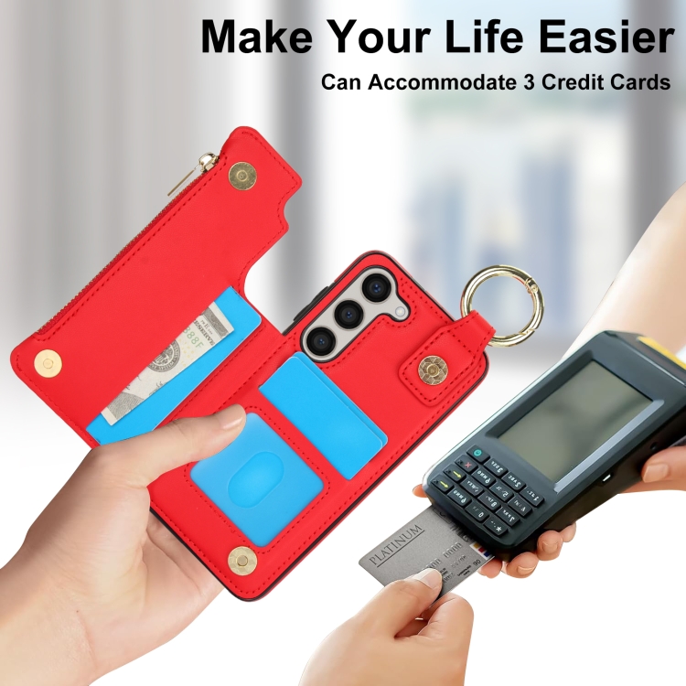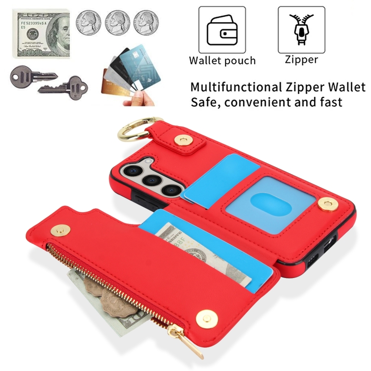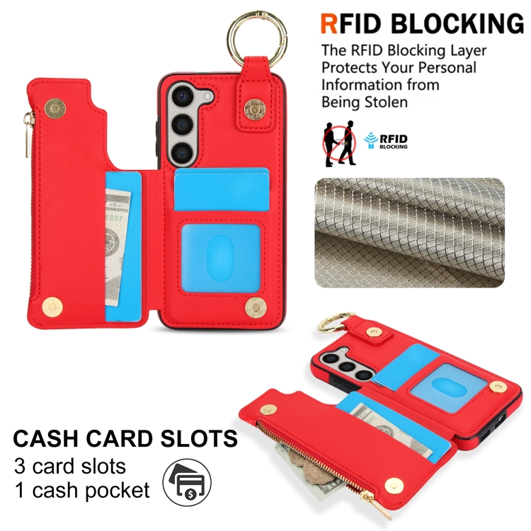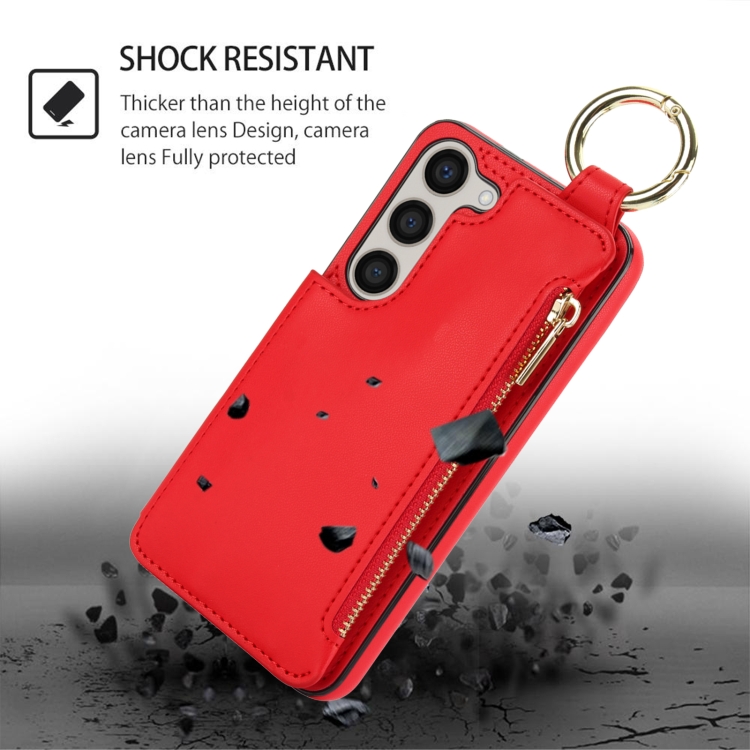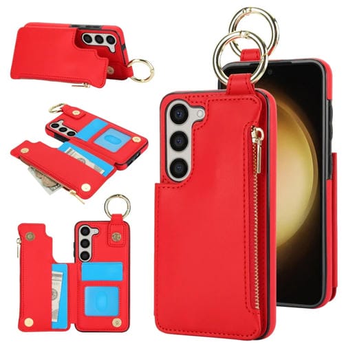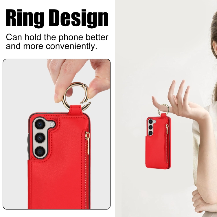 Estuche para Teléfono Samsung Galaxy S23 5G Rfld con Cremallera y Anillo de Doble Hebilla Antirrobo (Rojo)