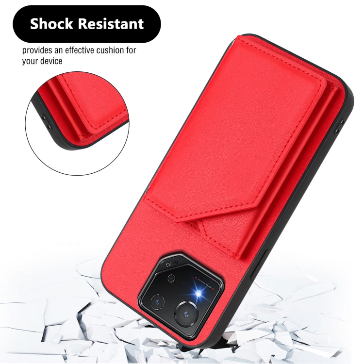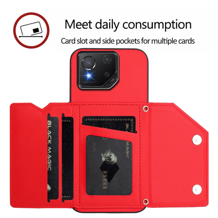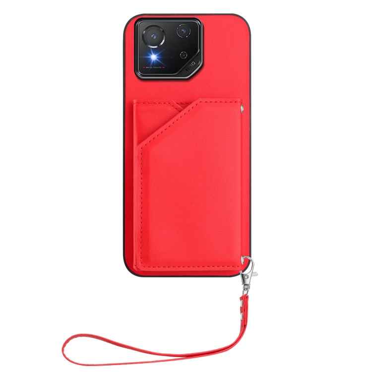 Estuche para Teléfono Asus Rog Phone 8 Skin Feel con 4 Ranuras para Tarjetas y Correa (Rojo)