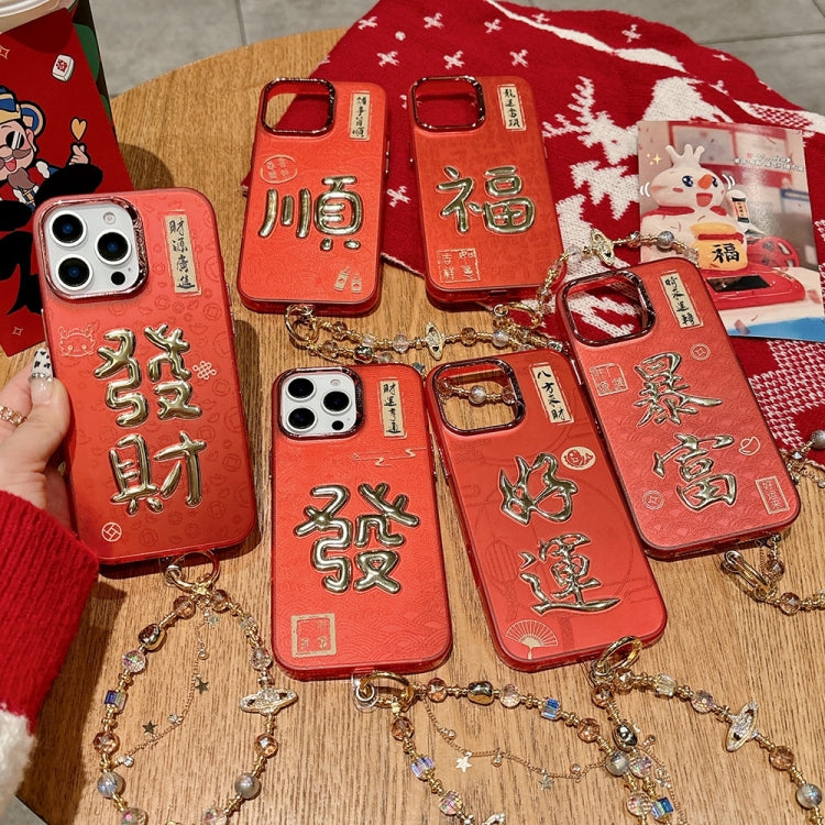Estuche para Teléfono iPhone 15 Pro Estampado Dorado 3D Imd Cadena de Cristal (Fortune)