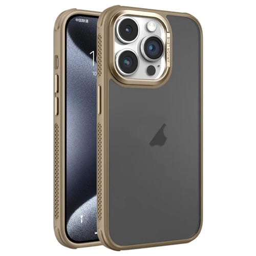 Estuche para Teléfono iPhone 15 Pro Marco de Lente Metal Esmerilado Sensación de Piel Enfriamiento Lateral (Dorado)