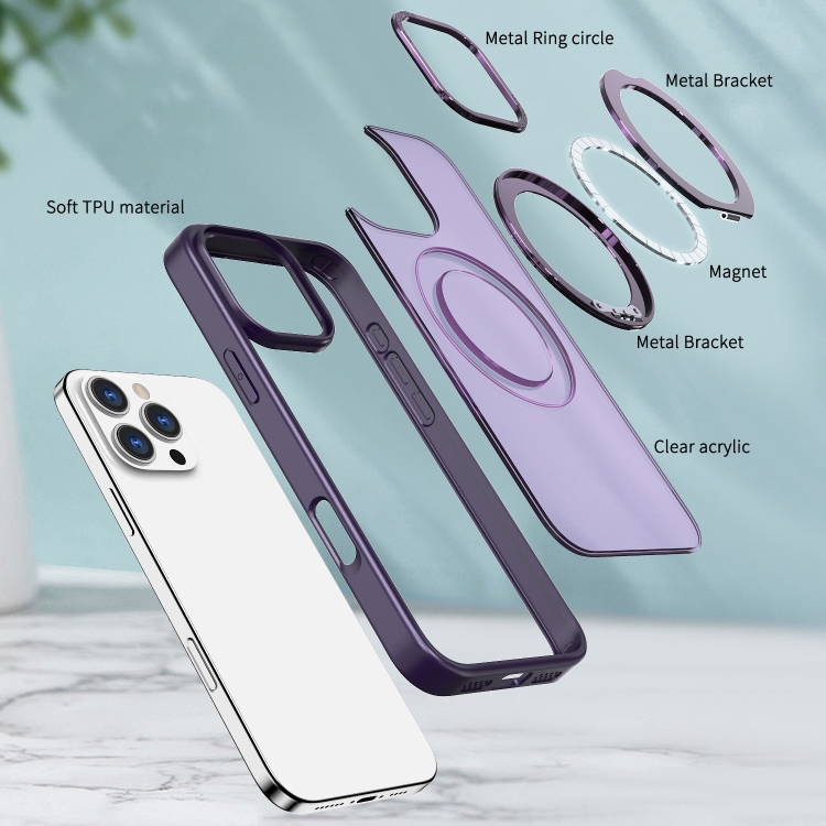 Estuche para Teléfono Wing con Soporte de Anillo Magnético Magsafe para iPhone 16 Pro Max (Morado Oscuro)