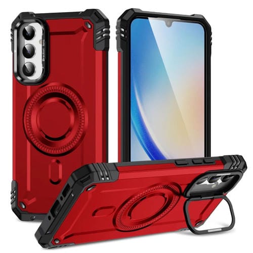Estuche para Teléfono Samsung Galaxy A34 con Soporte para Lente Magsafe (Rojo)