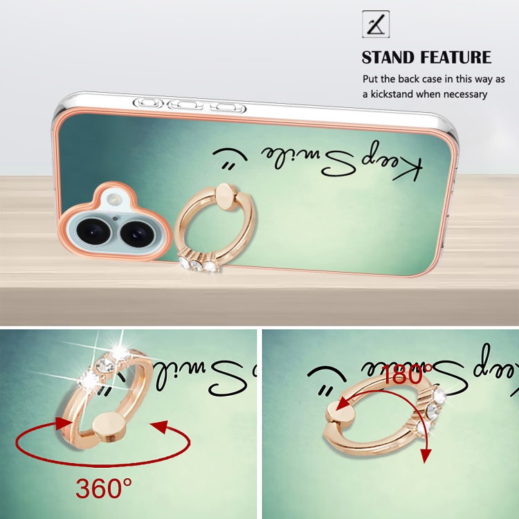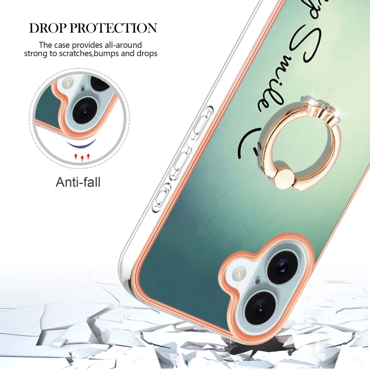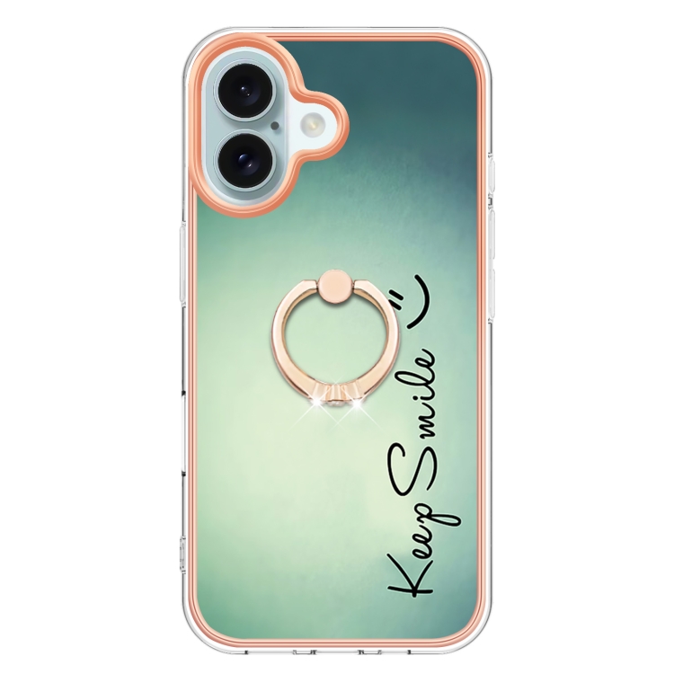 Estuche para Teléfono Imd Doble Cara con Galvanoplastia y Soporte para Anillo para iPhone 16 (Sonrisa)