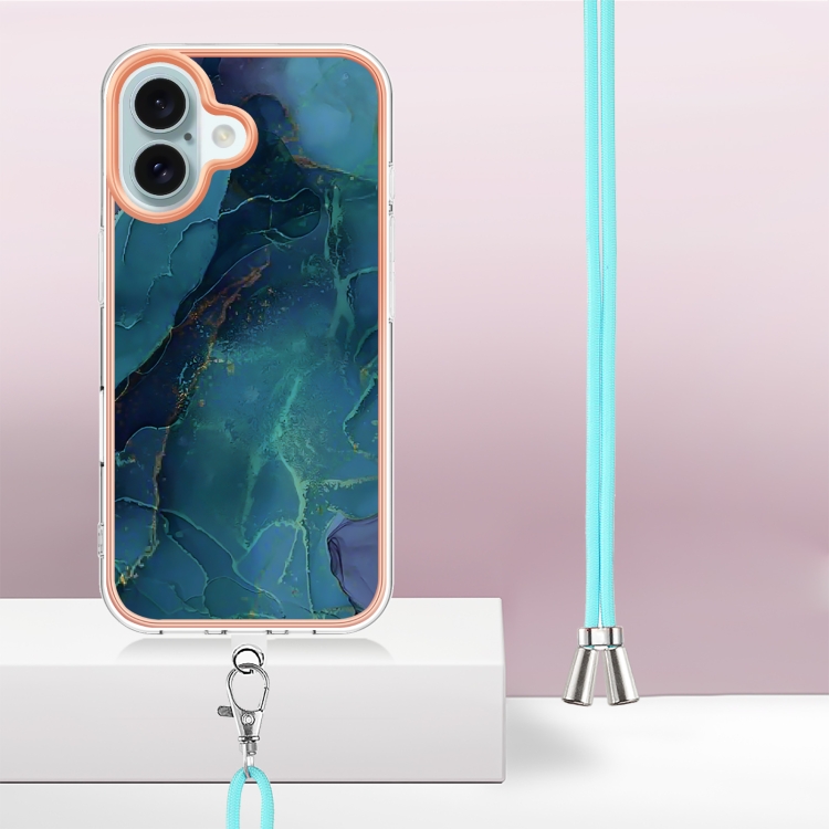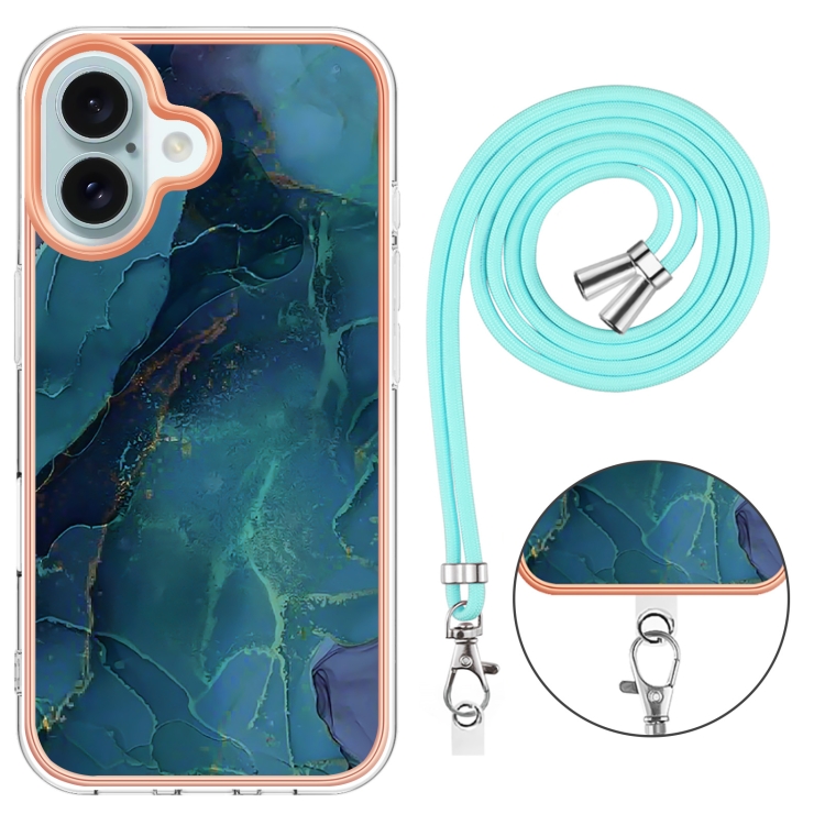 Estuche para Teléfono Imd Doble Cara Revestimiento Mármol Galvanizado iPhone 16 (Verde)