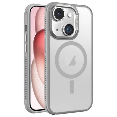 Estuche para Teléfono Magsafe iPhone 15 Marco Lente Metal Esmerilado Sensación Piel Enfriamiento Lateral (Gris)
